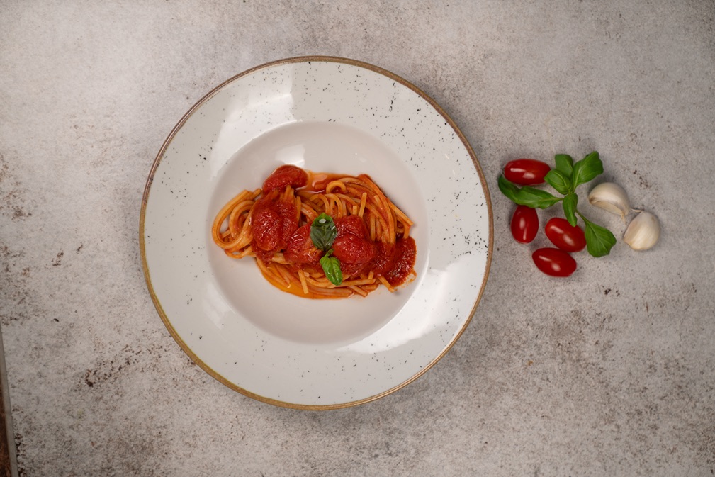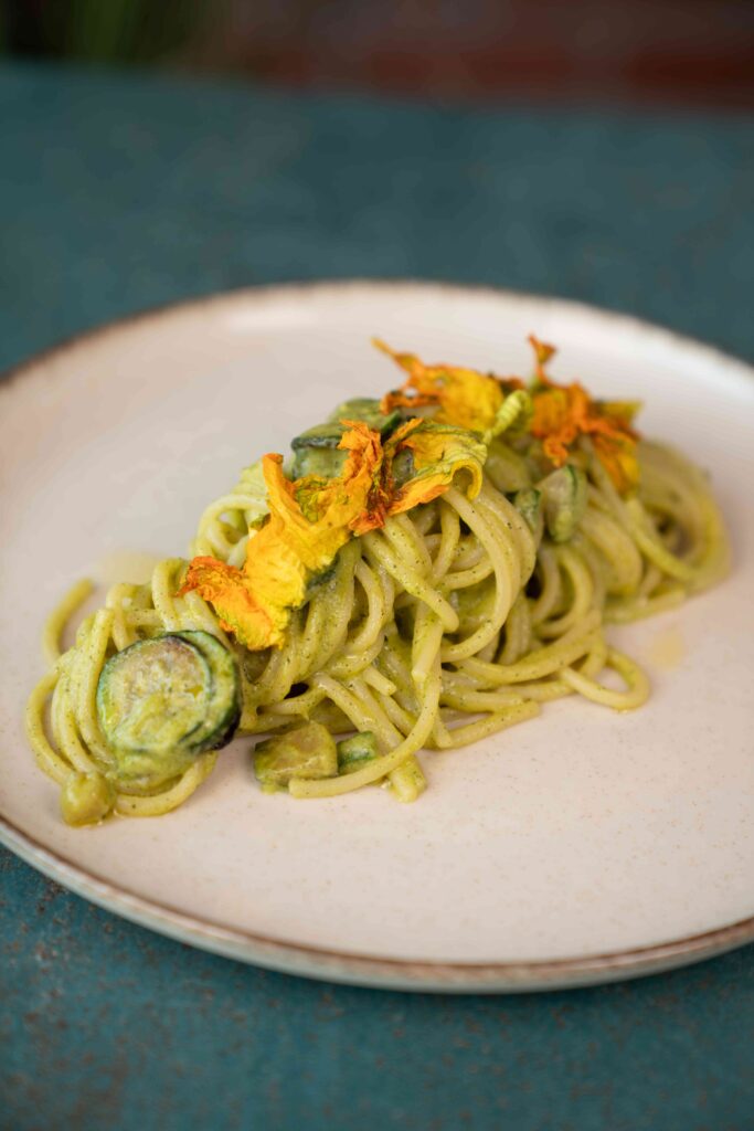 Riso venere con zucchine, pomodorini, fiocchi di latte
